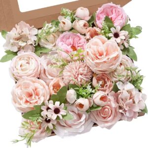 Artificial flowers for DIY Wedding Bouquet Table Centerpiece Home Decor (Light Pink)
